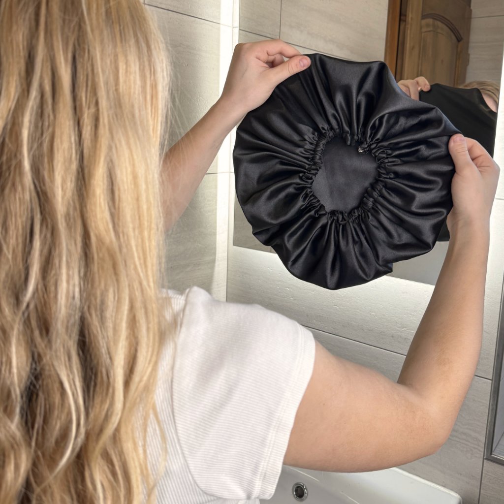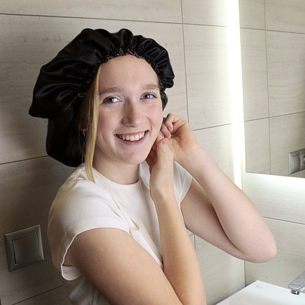 Bonnet ze saténu chrání Tvoje vlasy během spánku. Zabraňuje tření vlasů o polštář a následnému zauzlení.