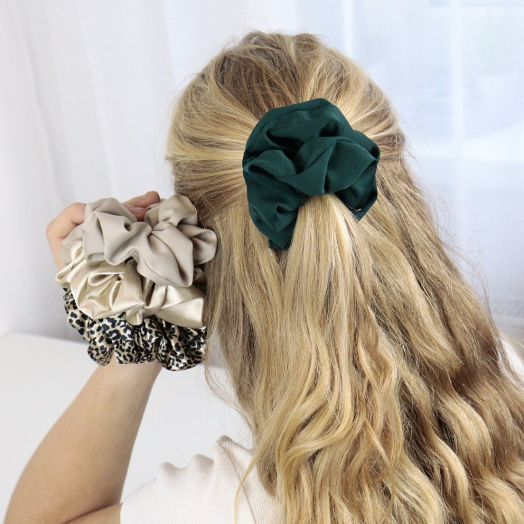Sada 4 ks saténových gumiček - Leopard, Champagne, Krémová matná, Tmavě zelená matná